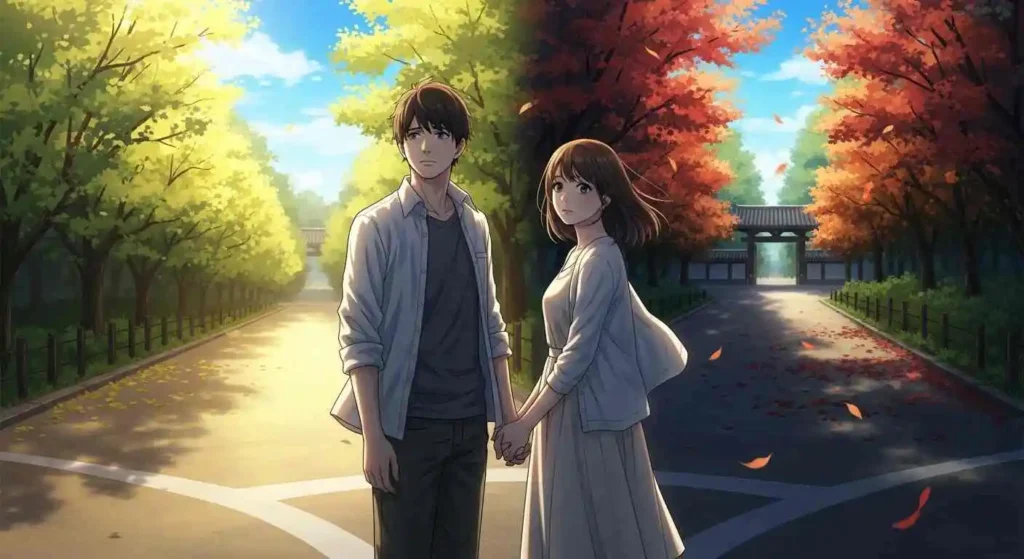 A passionate summer romance ends by the seaside as autumn approaches. The protagonist tries to avoid a complete severance of the relationship by deliberately using the word “friend” for someone who used to be a lover.